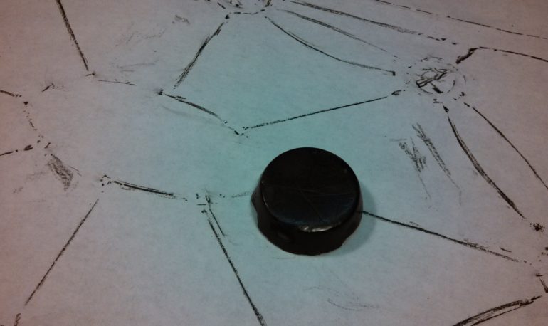 5. Absent the lead came, I’ve placed the individual pieces of cut glass on top of the “rubbing”.  This is a good time to inspect the glass pieces for scratches, a poor fit or a poor color match.