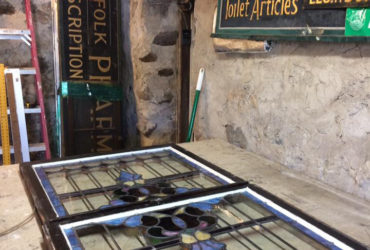 When it comes to colored glass windows, every effort is made to match the color as well as possible. But if we just can’t find the right match, we think it’s best to leave the original in place and lead it in. This will result in lead lines, but it also means your window has the original glass and can be quite beautiful.
