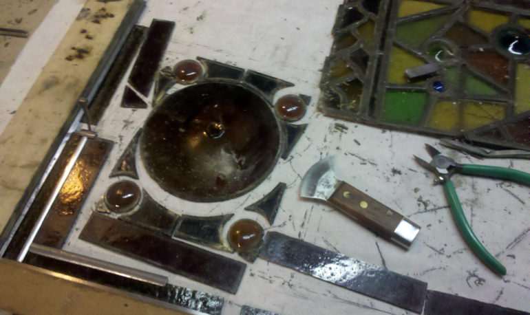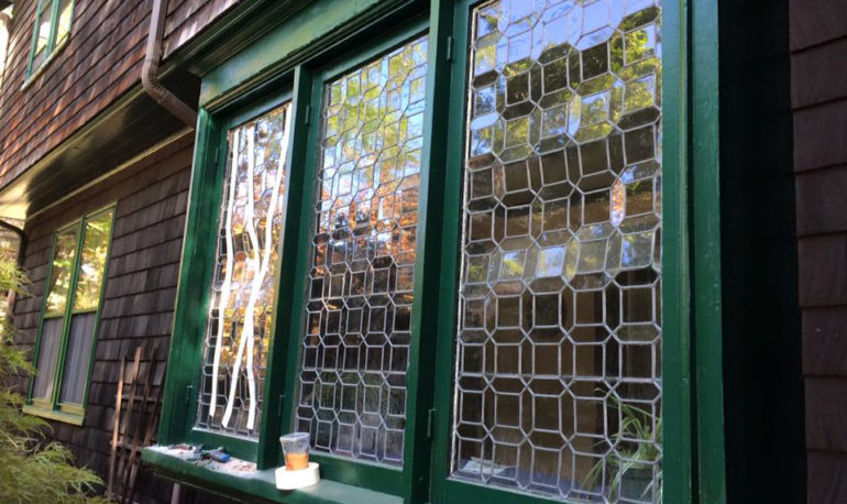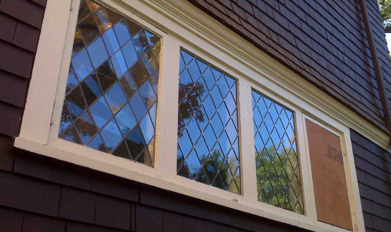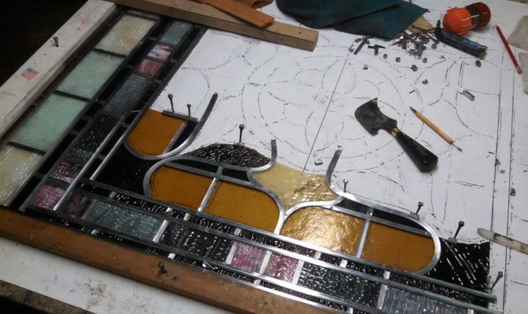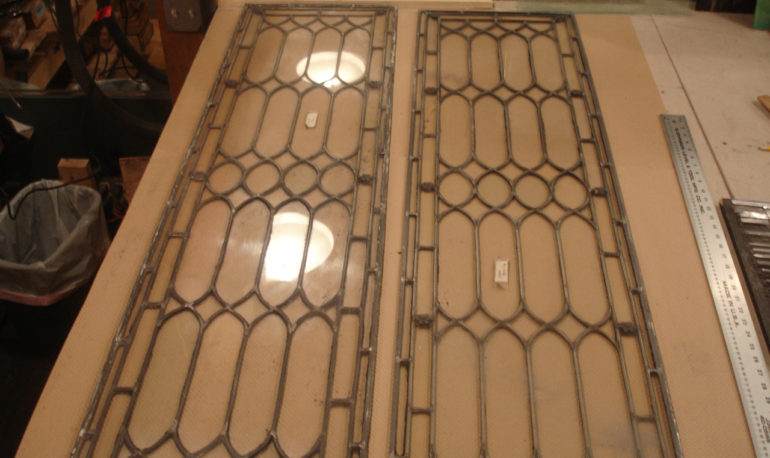 When it comes to colored glass windows, every effort is made to match the color as well as possible. But if we just can’t find the right match, we think it’s best to leave the original in place and lead it in. This will result in lead lines, but it also means your window has the original glass and can be quite beautiful.